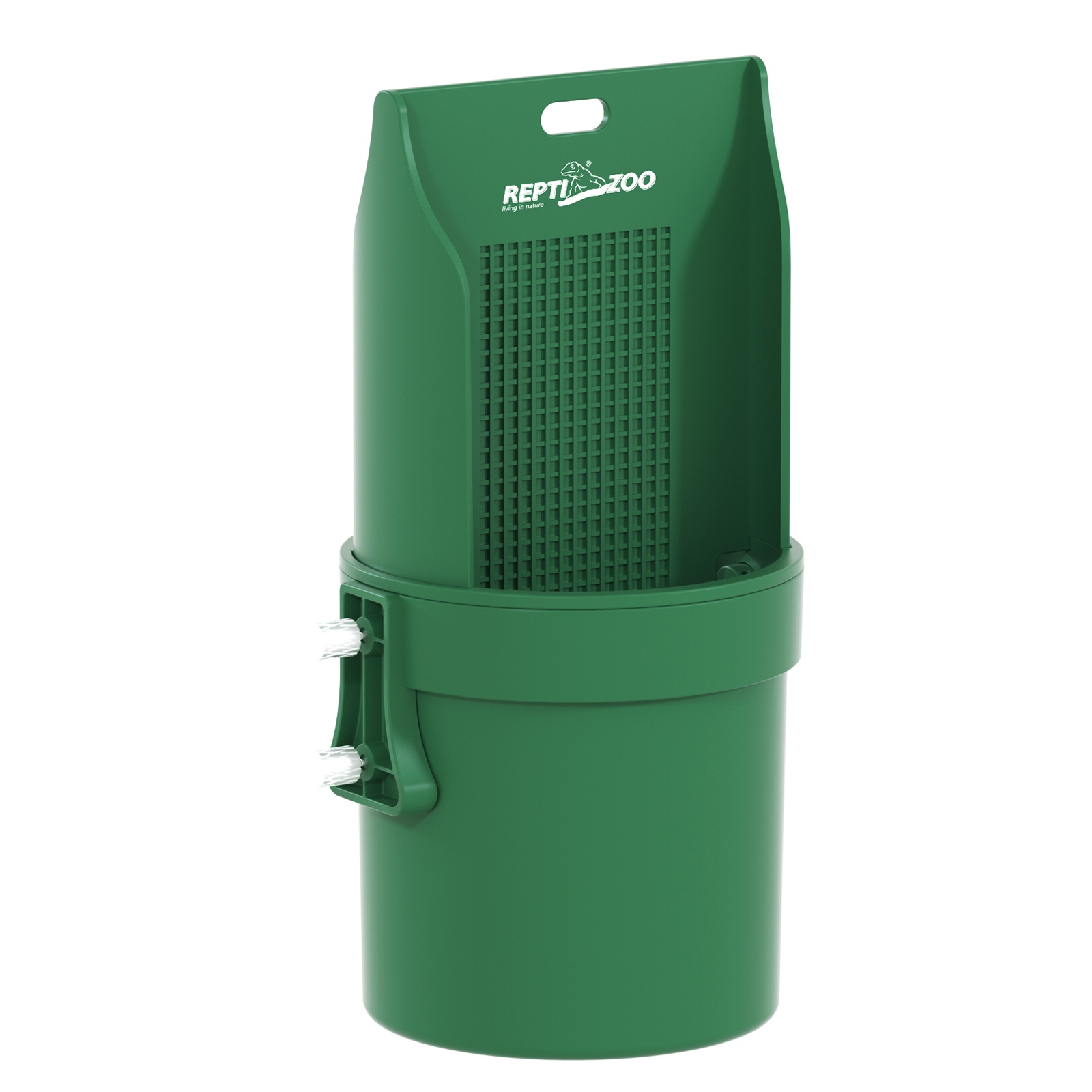 Karmnik można umieść na bocznej ścianie terrarium za pomocą dołączonych do zestawu śrub lub stabilnie zamocować na górnej siatce wentylacyjnej czy pokrywie terrarium, dzięki łańcuchowi. Miska jest prosta w montażu i demontażu, a specjalne uchwyty pozwalają na szybkie i łatwe jej przesunięcie w inne miejsce w terrarium.
