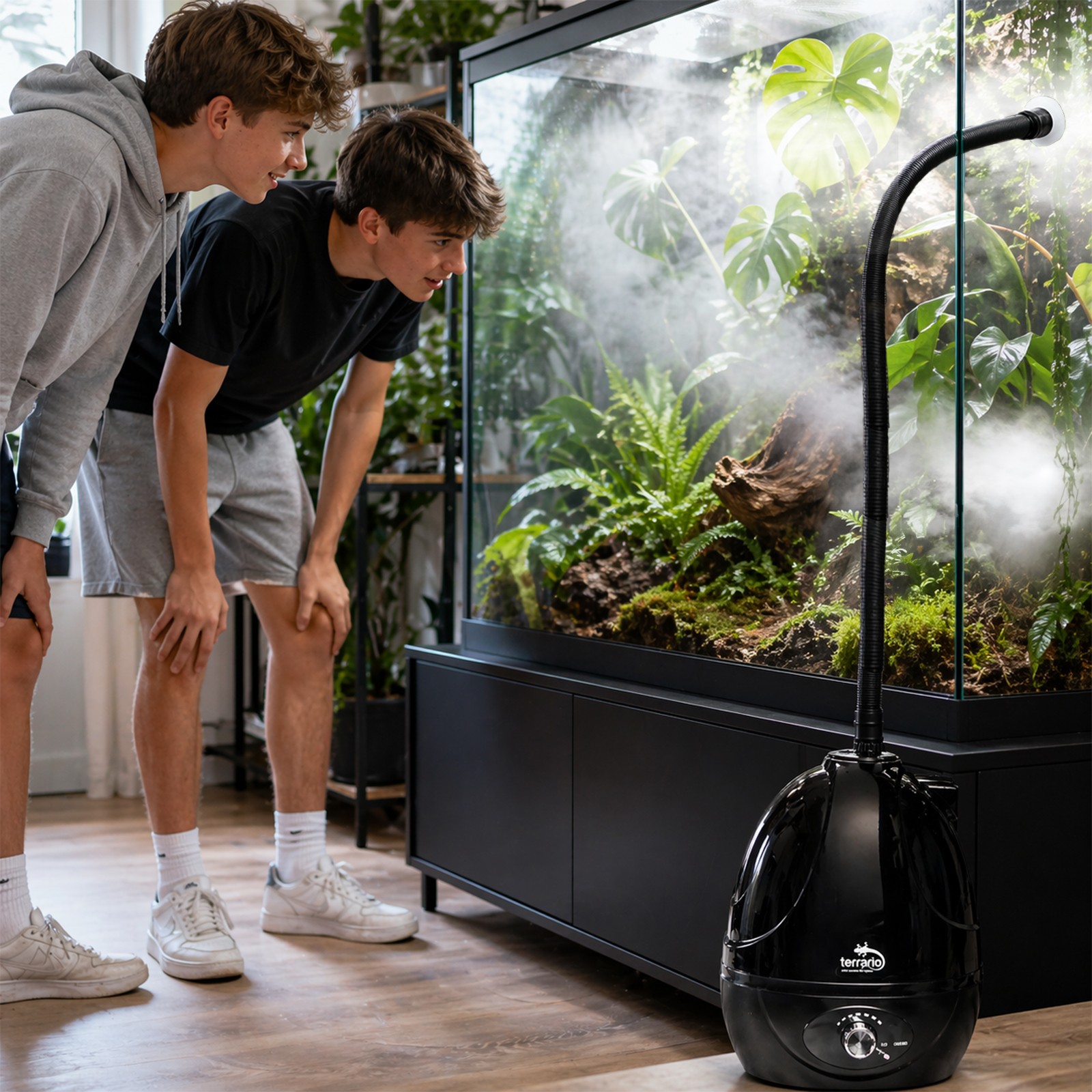 Wyobraź sobie terrarium spowite delikatną, naturalnie wyglądającą mgłą, w którym rośliny prezentują soczystą zieleń, a zwierzęta czują się komfortowo jak w swoim naturalnym środowisku. Terrario ShadowFog Ultra pozwala w prosty sposób stworzyć stabilny mikroklimat, podnosząc wilgotność bez przegrzewania wnętrza zbiornika. Dzięki temu Twoje terrarium będzie nie tylko efektowne wizualnie, ale również bezpieczne i przyjazne dla jego mieszkańców. To wygoda, kontrola i piękny efekt każdego dnia.